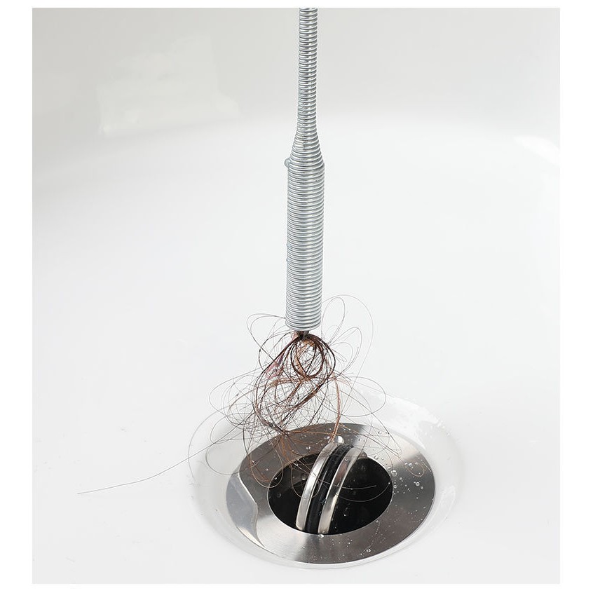 - Đầu lò xo được thiết kế rất khoa học, có thể bám vào vật cản một cách dễ dàng và chắc chắn giúp loại sạch mảng bám, tóc rối, rác thải... làm đường ống nước nhà bạn luôn thông thoáng..