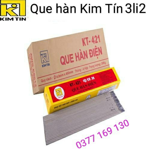 Que hàn thường (sắt) Kim Tín KT-421 là vật liệu kết dính sắt rất tốt, được sản xuất tại Việt Nam. Que hàn KT-421 có đường hàn tuyệt đẹp, mới hàn bền chắc, năng suất hoạt động cao, giúp cho mối hàn nhuyễn và đẹp, láng, dễ bong xỉ, nhẹ điện, ít khói và bắn toé. Có thể hàn được ở mọi vị trí. Dùng cho mối hàn thép cacbon và thép hợp kim thấp, có tải trọng trung bình.