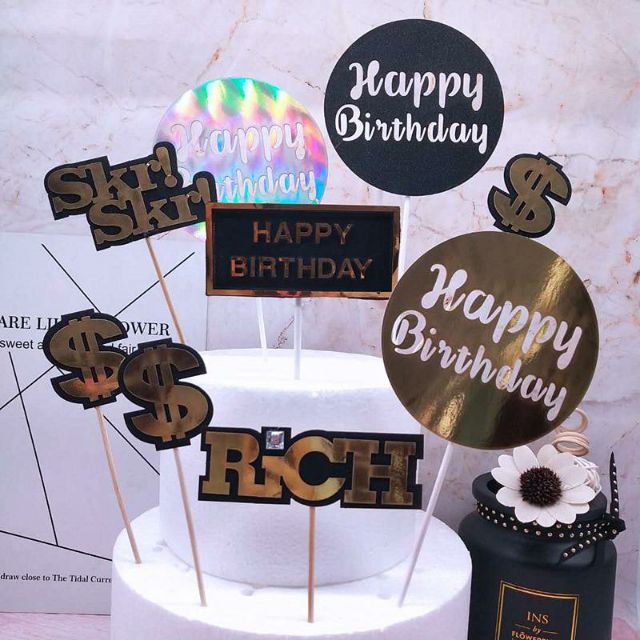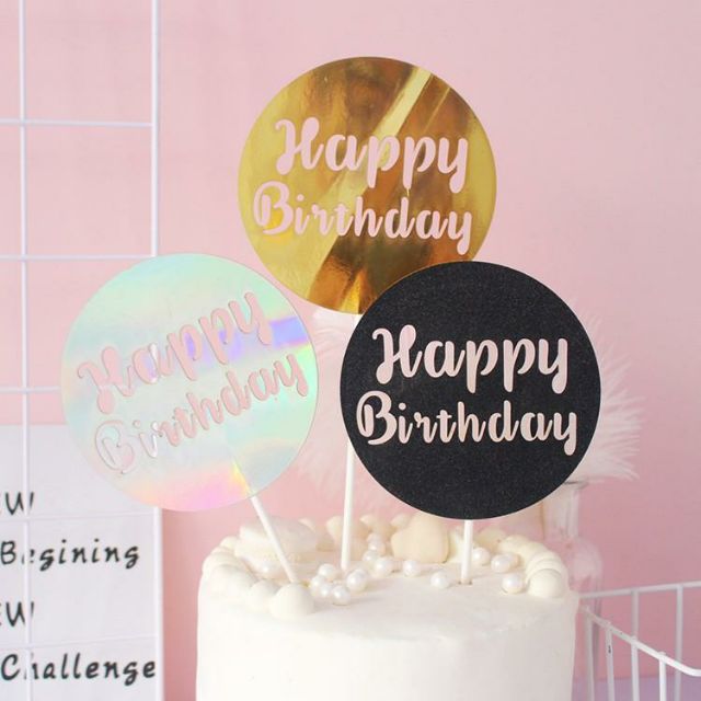 Que topper cắm bánh HPBD tròn