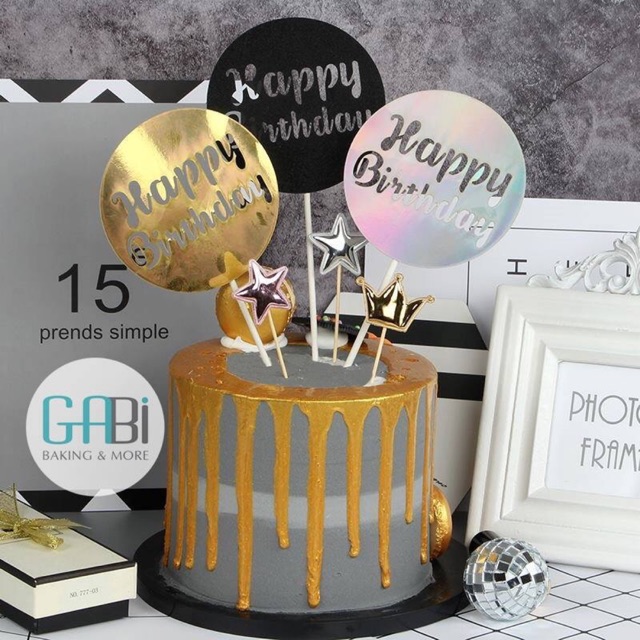Giới thiệu Que topper cắm bánh HPBD tròn