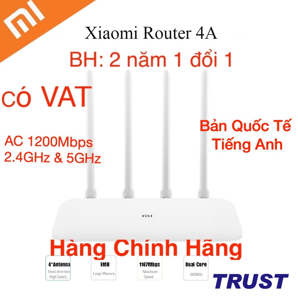 Máy tính & Laptop > Thiết Bị Mạng > Bộ Phát Wifi || [Bản Quốc Tế] Xiaomi AC 1200Mbps Dualband Bộ Phát Wifi R4AC - Mi Router 4A - Quốc Tế Tiếng Anh-BH 2 năm 1 đổi 1Còn hàng