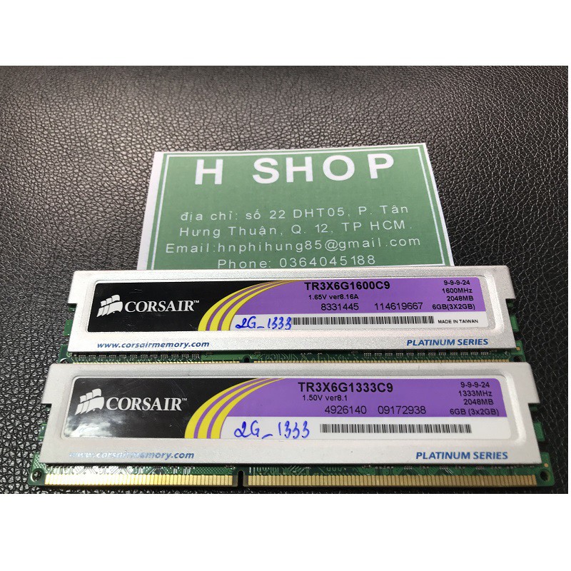 Máy tính & Laptop > Linh Kiện Máy Tính > Ram Máy Tính || Ram 4Gb DDR3 bus 1333 - 10600U, Kit 4gb (2x2gb), ram tản nhiệt bộ hiệu CORSAIR, tháo máy chính hãng, bảo hành 3 nămCòn hàng