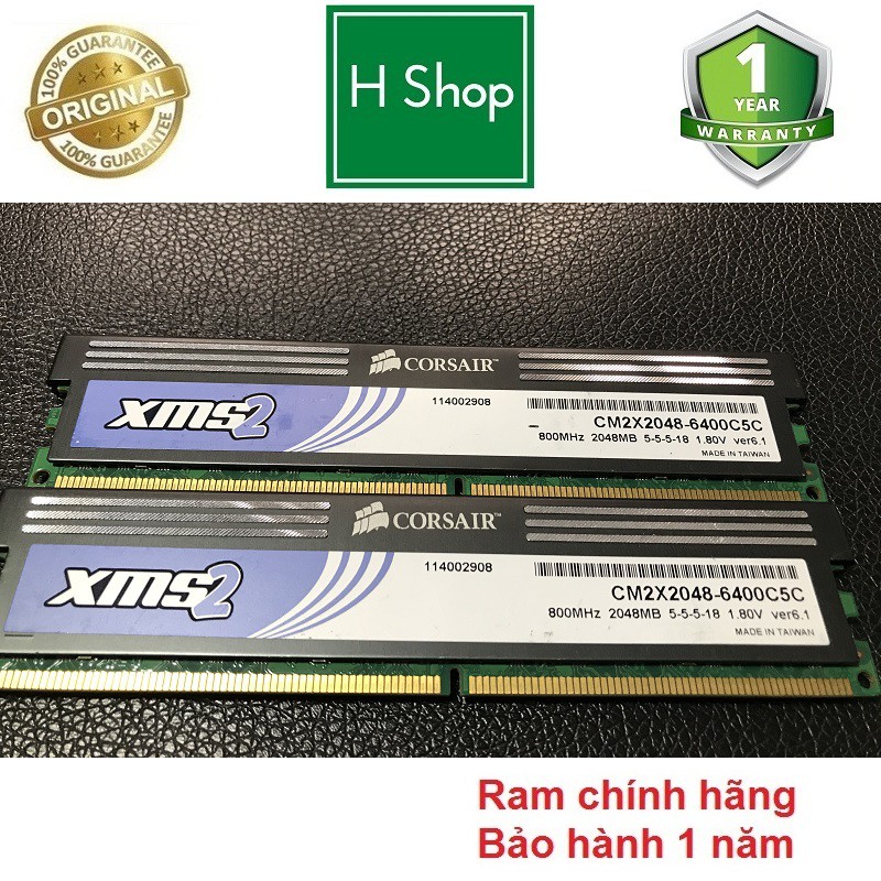Máy tính & Laptop > Linh Kiện Máy Tính > Ram Máy Tính || Ram PC DDR2 (PC2) 2Gb bus 800 - 6400U, chính hãng Corsair XMS2, bảo hành 12 thángCòn hàng
