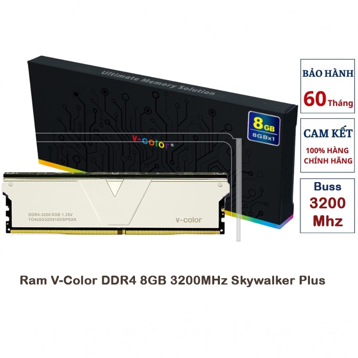 Máy tính & Laptop > Linh Kiện Máy Tính > Ram Máy Tính || Ram V-Color DDR4 8GB 3200MHz Skywalker Plus - Màu BạcCòn hàng