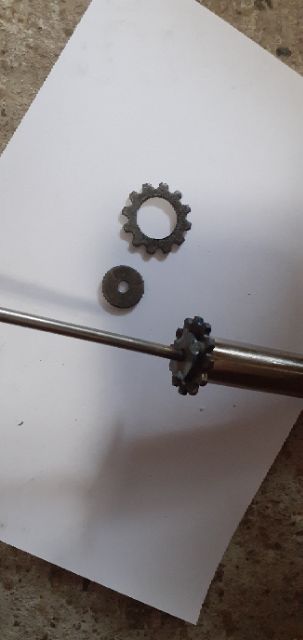Bộ sản phẩm gồm 2 chi tiết bánh răng ngoài và lõi ở trongDo bánh răng đề cũ của xe máy ngày càng khan hiếm và giá cả lên cao. Do vậy chúng tôi đã chế tạo ra loại bánh răng ,có kích thước tương đương loại bánh răng đề ,để hàn làm xiên máy nướng thịt tự động,