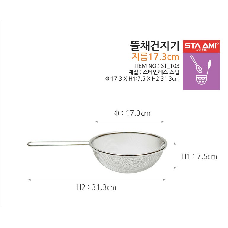 Rây lọc thực phẩm Sta Ami Hàn Quốc ST_103 inox cao cấp không gỉ sétMô tả :