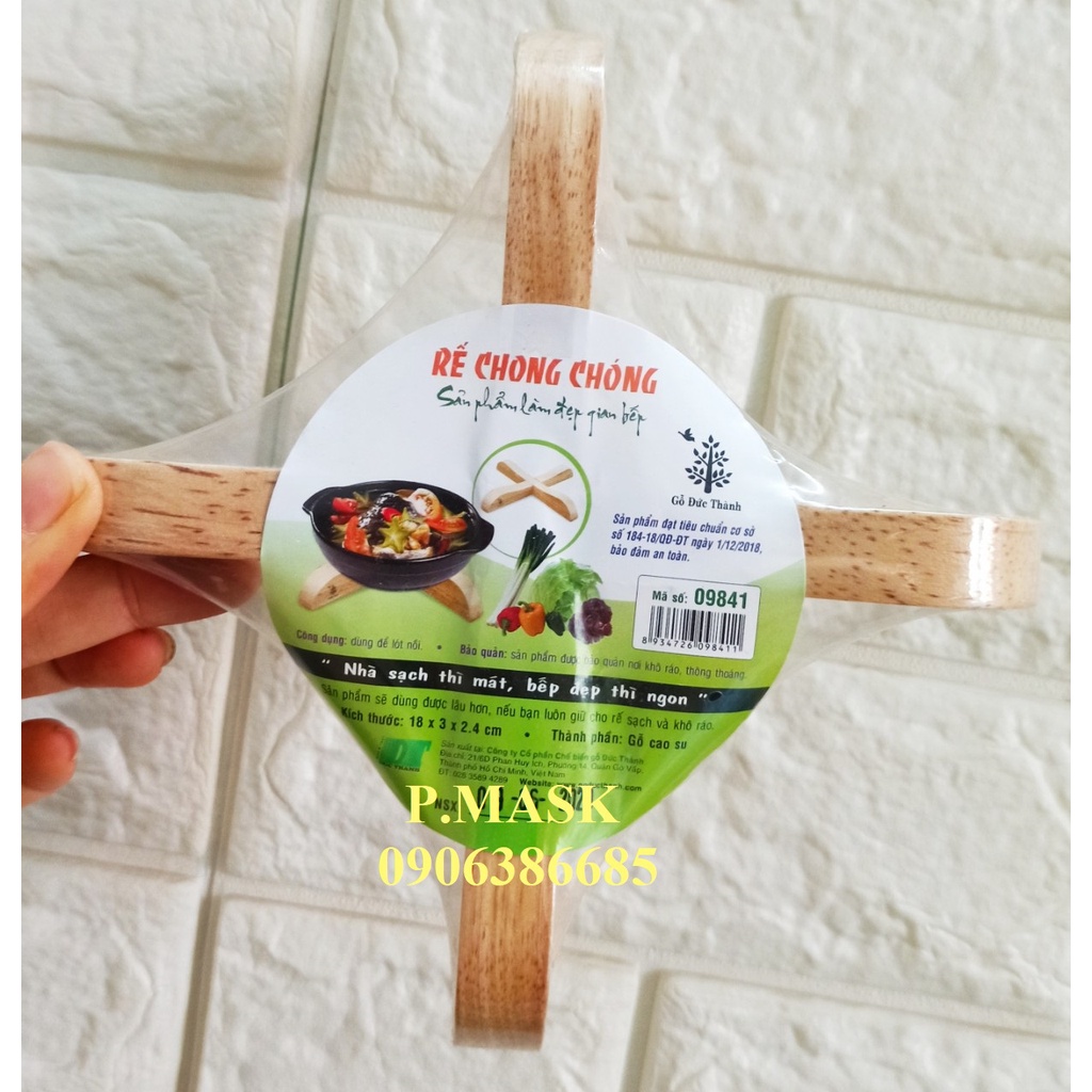 Giới thiệu Rế chong chóng Gỗ Đức Thành 09841 - Rế lót nồi hình chong chóng Gỗ cao su Đức Thành