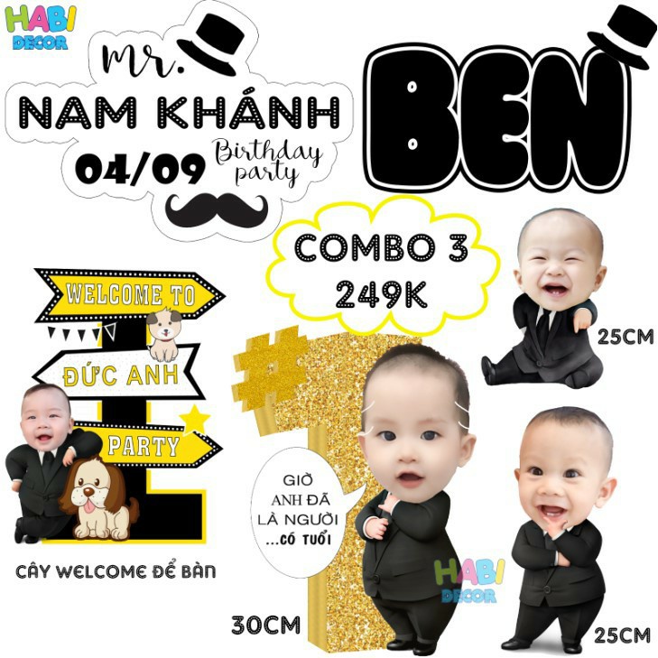 Nhà cửa & Đời sống > Trang trí nhà cửa > Khác || [ RẺ ĐẸP ] Set chibi, bảng tên, cây welcome, tên bé để bàn trang trí sinh nhật, thôi nôi, đầy tháng cho bé trai BT01Còn hàng