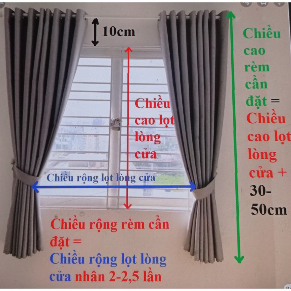 ❌ Kích thước rèm cửa trên là kích thước rèm cửa thẳng, chưa bao gồm độ nhún, không bao gồm thanh treo và lớp voan trắng. Để cho rèm cửa có đổ sóng đẹp bạn vui lòng lựa chọn kích thước rèm cửa gấp từ 2 đến 2.5 lần Kích thước cửa .