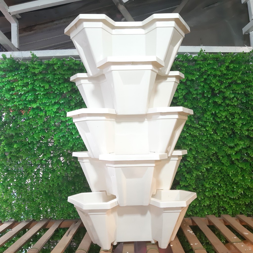 [Rẻ Vô Địch] Bộ 5 chậu tháp xếp tầng trồng rau, hoa cảnh tiện lợi, Chậu tam giác xếp tầng giá rẻ