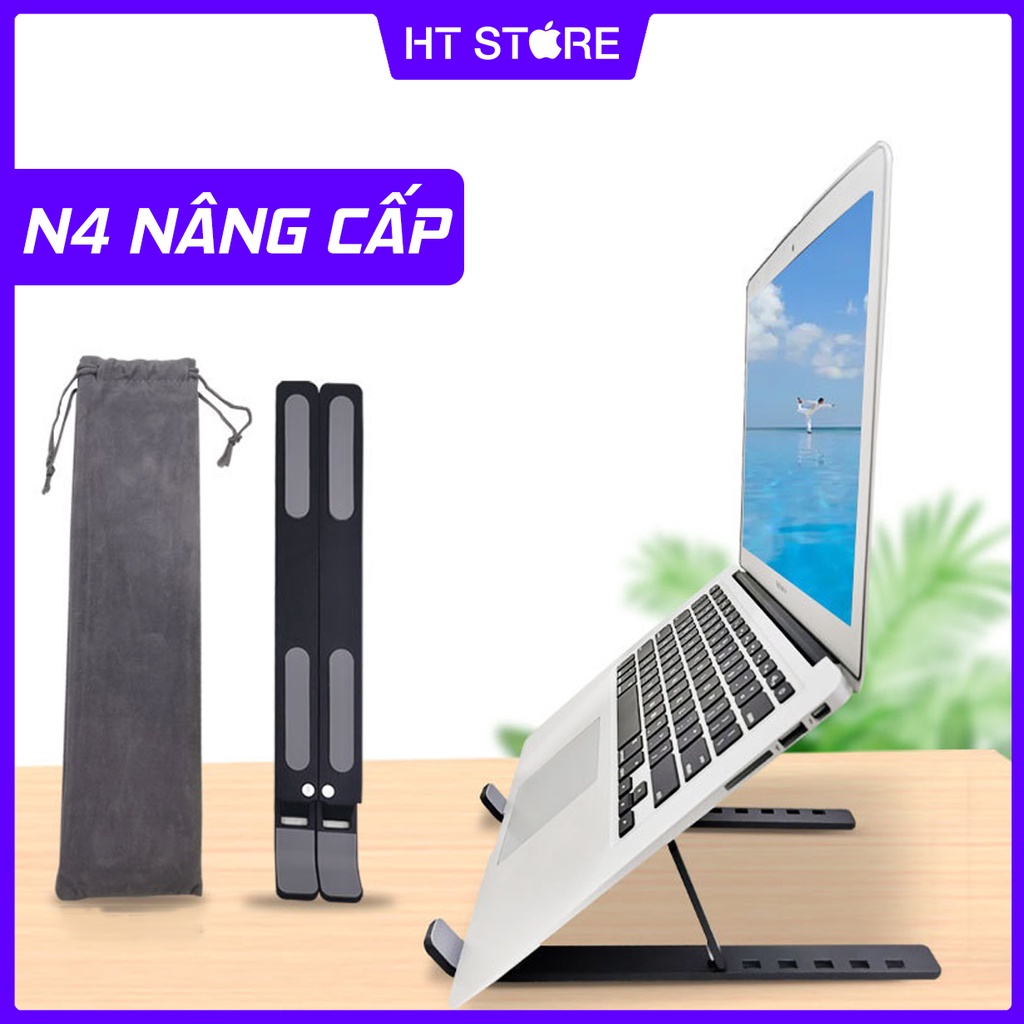 GIÁ ĐỠ LAPTOP, MACBOOK, ULTRABOOK, IPAD HỢP KIM NHÔM N4 CHẤT LƯỢNG CAO ĐƯỢC TẶNG KÈM TÚI ĐỰNG TIÊU CHUẨN👉 N4 là mẫu giá đỡ laptop được làm bằng chất liệu hợp kim nhôm chất lượng cao. Ra đời sau N3, thiết kế hơi đơn giản so với N3 & N3 Nâng cấp nhưng giá thành tốt, phù hợp laptop <15.6 inch
