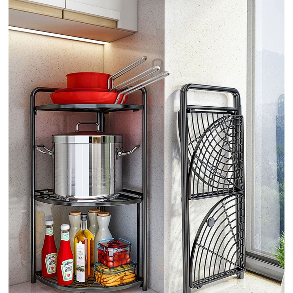 Kệ để đồ gấp gọn đa năng được thiết kế góc một phần 4 bo tròn gấp gọn phù hợp với không gian chật hẹp khi không sử dụng có thể gấp gọn không chiếm diện tích căn phòng, trong những không gian chật hẹp như góc phòng bạn có thể bố trí kệ vừa tiện lợi để vật dụng gia đình vừa tăng tính thẩm mỹ cho không gian.Kệ chuyên dùng để vật dụng nhà bếp nhưng bạn cũng có thể sử dụng cho nhiều không gian khác làm tăng sự gọn gàng sang trọng cho không gian như phòng ngủ, phòng khách, phòng ăn, phòng đọc sách, nhà tắm vv…
