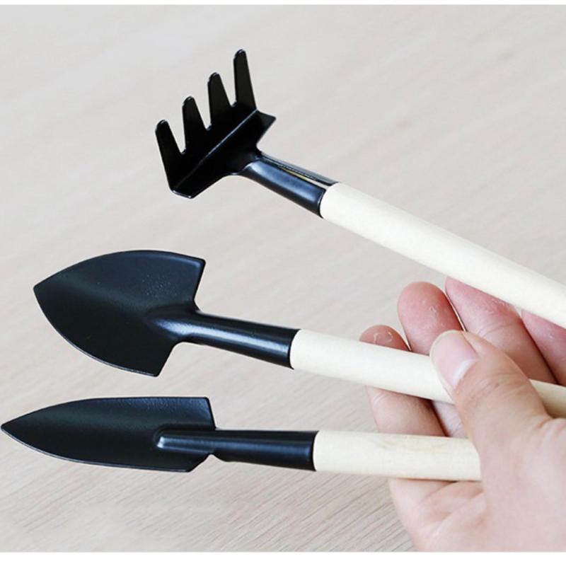 BỘ DỤNG CỤ CUỐC XẺNG MINI LÀM VƯỜN, TRỒNG CÂY CẢNH 3 MÓN CÁN GỖ- Chất liệu: cán gỗ + lưỡi bằng kim loại.
