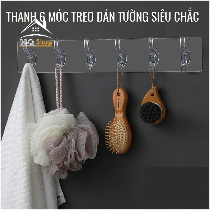 [RẺ VÔ ĐỊCH] Thanh Treo Đồ Móc Treo Đồ Dán Tường Đa Năng 6 Móc (trong suốt)
