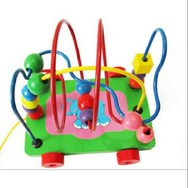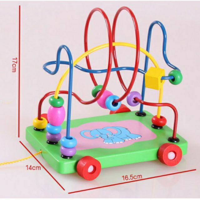 Bộ đồ chơi vừa là chiếc xe gỗ kéo vận động,vừa là món đồ luồn hạt luyện khéo tay cho bé.