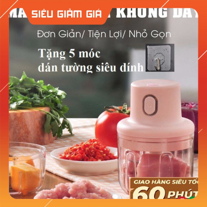 [RẺ VÔ ĐỐI] Máy Xay Mini Sạc Điện, Có Cổng Sạc Usb, Xay Hành, Tỏi, Rau Củ Quả