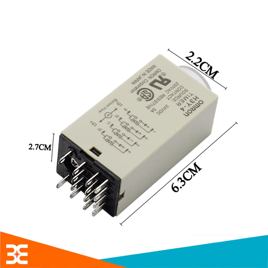 Kích thước của relay timer omron H3Y-4: 6.3x2.2x2.7 cm