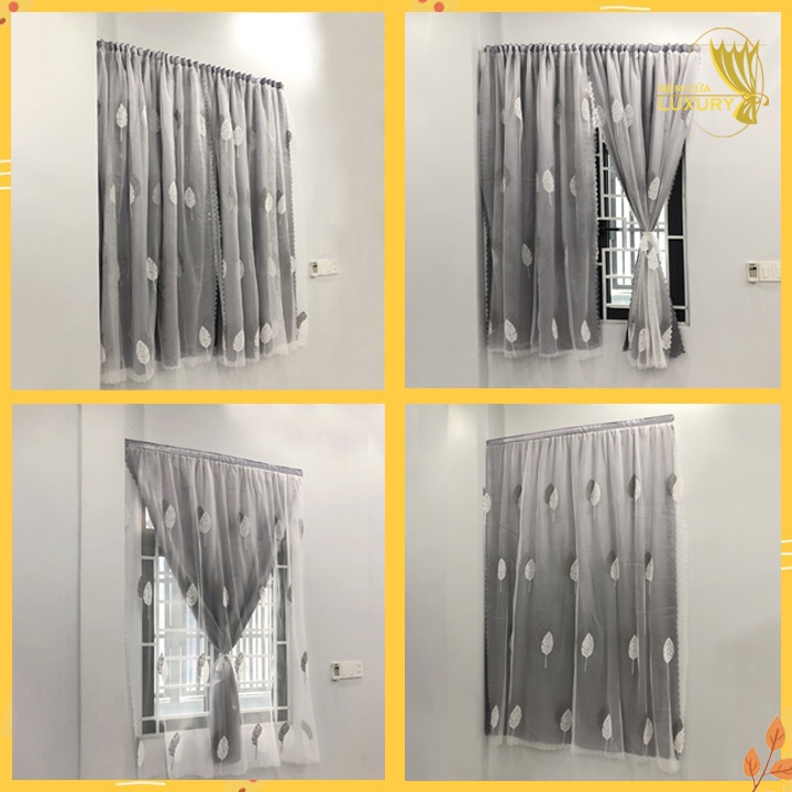Nhà cửa & Đời sống > Trang trí nhà cửa > Rèm cửa, màn che || Rèm cửa dán tường màu Xám Ghi 2 lớp voan họa tiết đẹp chống nắng cao cấp không khoan tường dễ lắp đặtCòn hàng
