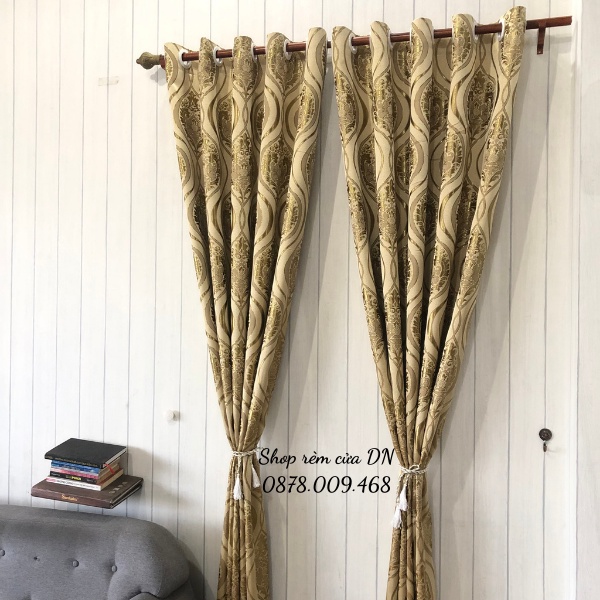 Rèm cửa sổ,màn cửa vải gấm dày thêu hình bông hoa dạng sóng siêu đẹp tặng kèm dây vén.
