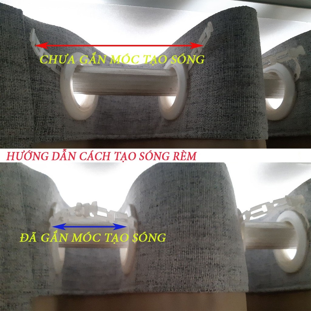 - Kích thước rèm trên là 1 TẤM vải TRẢI PHẲNG, khi treo lên thanh sẽ gấp nếp lại để tạo sóng, do vậy rèm khi treo lên thanh sẽ NHÚN LẠI CÒN 1 NỬA (VD: rèm rộng 1,5m treo lên sẽ còn tối đa 90cm. Nên đặt mua rèm cửa có chiều rộng gấp từ 2 - 2,5 lần so với độ rộng cửa để có độ nhún đẹp nhất).