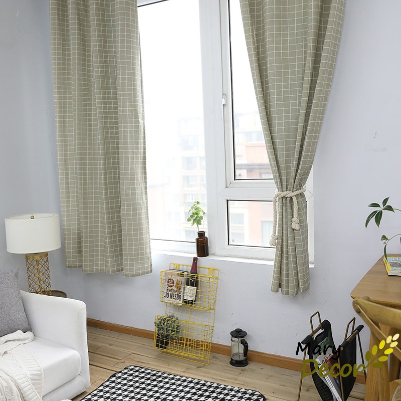 Nhà cửa & Đời sống > Trang trí nhà cửa > Rèm cửa, màn che || Rèm cửa sổ trang trí vải bố linen đẹp - họa tiết Caro xám R-D06Còn hàng