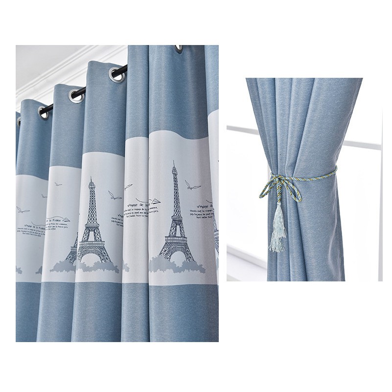 * Rèm cửa với chất liệu vải sợi dày, sờ vào mát tay. Rèm cửa với hình tháp Eiffel pháp làm điển nhấn cho rèm kết hợp nền xanh tạo nên cảm giác trong lành 1 cách thông thoáng. Mẫu rèm độc lạ tạo nên một không gian mới mẻ cho ngôi nhà