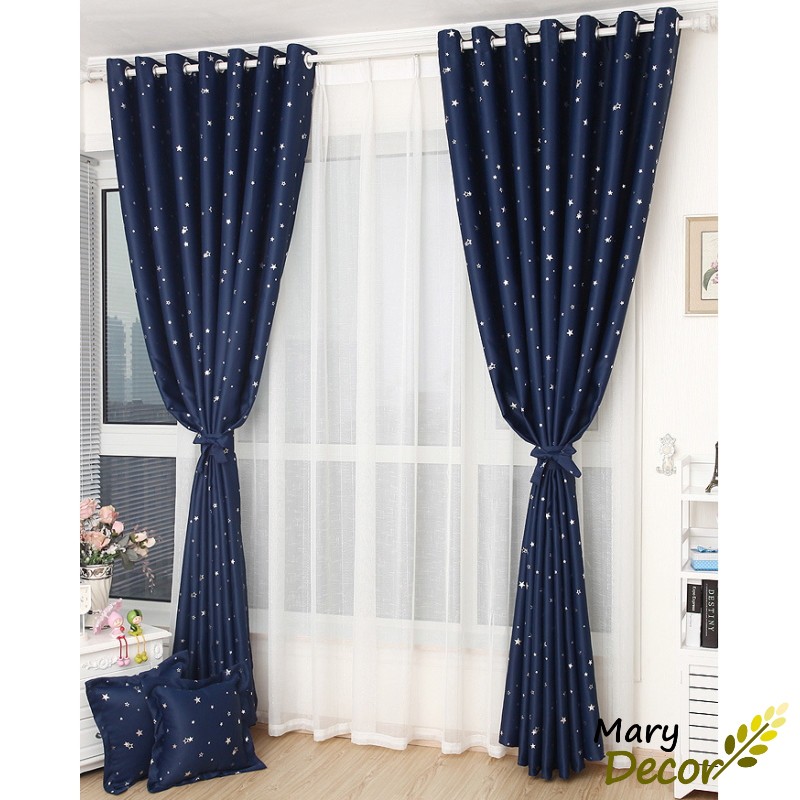 Rèm Gấm dệt 3 lớp Cao Cấp - Rèm cửa size VỪA- Chống nắng 95% (trang trí nhà cửa) Họa tiết sao