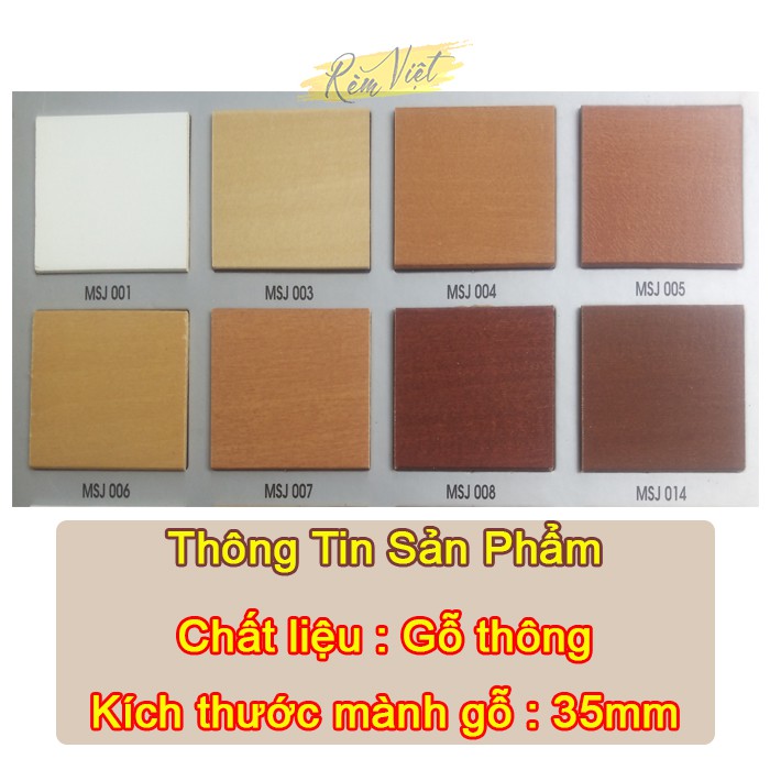 Rèm gỗ được làm từ chất liệu gỗ 100%, được đan kết các thanh ngang lại với nhau bằng dây thang. Gỗ có nhiều màu gỗ và các thanh ngang có bề dày và rộng khác nhau, tùy vào sở thích của mình để lựa chọn rèm gỗ phù hợp.Rèm sáo gỗ cửa sổ có độ rộng của bản lá rèm 35mm, độ dày lá rèm là 3.2mm. Rèm gỗ cửa sổ được sơn UV ba lớp chống bạc màu, chống bám bụi và dễ dàng vệ sinh trong quá trình sử dụng.