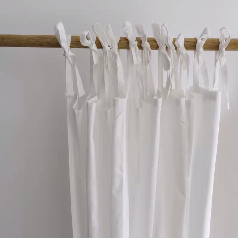 Rèm linen trắng tinh dạng buộc dây, phong cách vintage chống nắng cao cấp, màn vải treo tường trang trí decor cửa