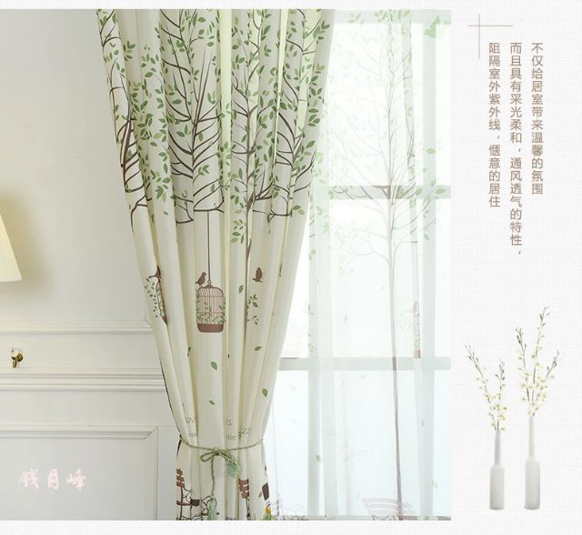 Nhà cửa & Đời sống > Trang trí nhà cửa > Rèm cửa, màn che || Rèm treo cửa mẫu cây xanh và lồng chim (1x2.7m, 2x2.7m, 3x2.7m)Còn hàng