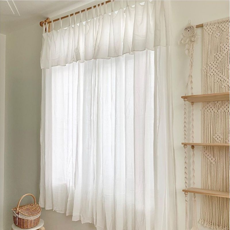 Rèm Voan Lụa Màu Trắng May Kiểu Vintage, Rèm Tab Cửa Sổ, Rèm Cửa Đi Đẹp, Rèm Trang Trí Cafeshop