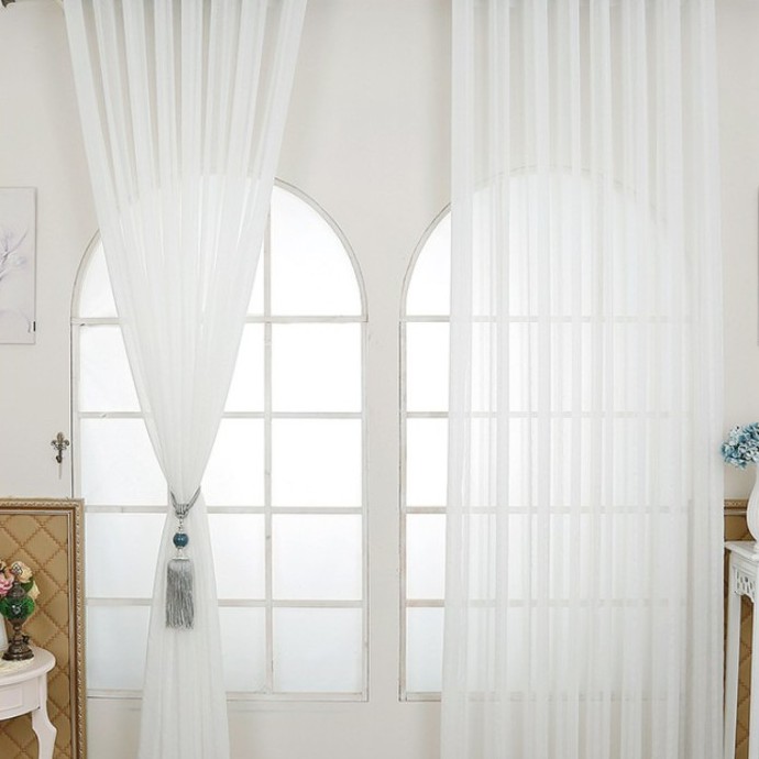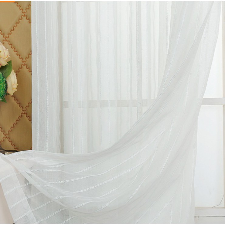 ** Rèm voan trắng chất liệu voan sợi mềm, họa tiết thêu chìm sọc nhỏ trang nhã