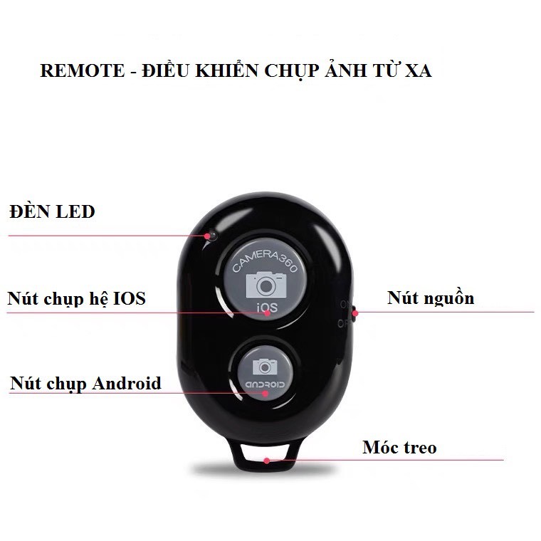 01 Remote Chụp Ảnh Bluetooth Cho Điện Thoại Android, IOS