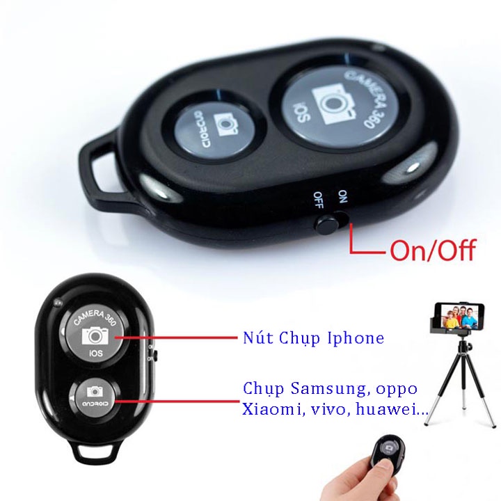- Remote chụp ảnh từ xa Bluetooth có móc treo, tiện lợi mang theo mình đến bất cứ đâu