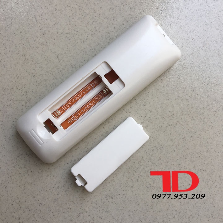 Bộ điều khiển từ xa dùng 2 pin tiểu 1,5V. Nếu không sử dụng máy điều hòa lâu nên tháo pin ra đề phòng pin chảy nước làm hỏng điều khiển từ xa.