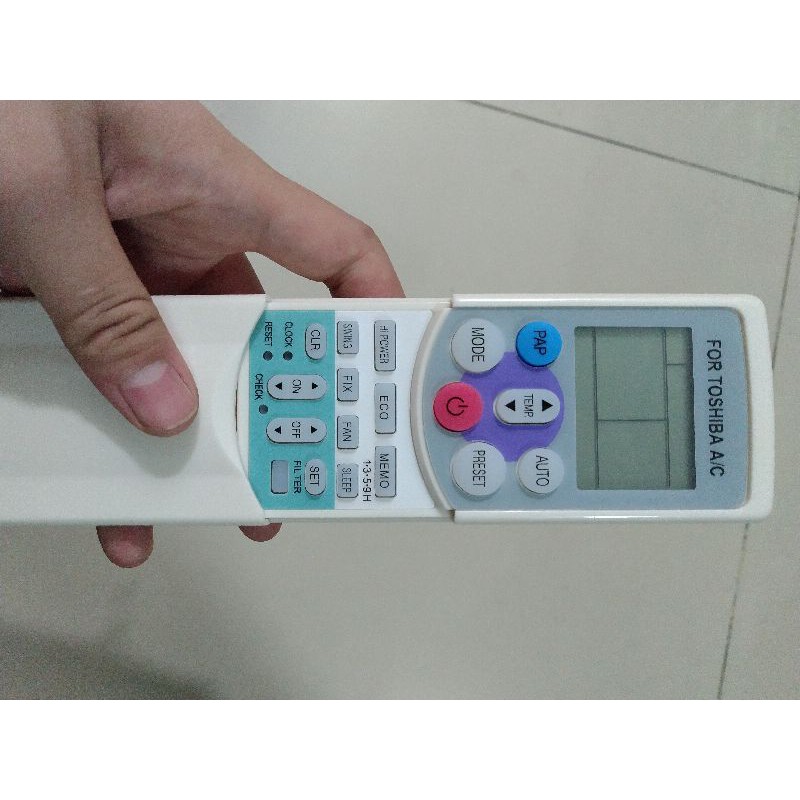 remote điều khiển máy lạnh Toshiba nắp trượt màu trắng ( nút ấn ba màu )với cấu tạo nhựa ABS chắc chắn