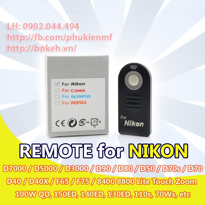 Remote điều khiển Nikon for D50 D60 D70s D80 D3000 D5000 D7000Điều khiển từ xa (dùng bằng tín hiệu hồng ngoại) hữu dụng khi bạn muốn chụp ảnh tập thể hay muốn tránh bị rung máy khi bấm chụp.