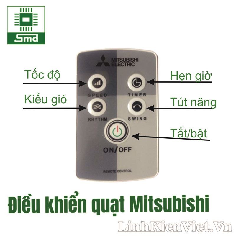 Remote hồng ngoại tay điều khiển từ xa quạt Mitsubishi, điều khiển quạt cây quạt treo thay thế nhận mạch zin.TÍNH NĂNG SẢN PHẨM