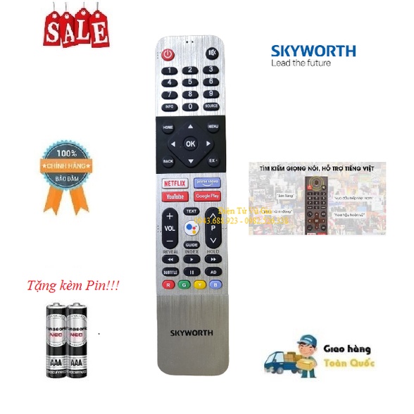 Sản phẩm Remote Điều khiển tivi Skyworth giọng nói- Hàng mới chính hãng Skyworth 100% Tặng kèm Pin!!! là hàng mới chính hãng của Skyworth, chất lượng cao được cửa hàng chúng tôi cam kết:- Cam kết sản phẩm mới chính hãng Skyworth đầy đủ tem mác đúng như hình ảnh miêu tả ( Hình ảnh do shop tự chụp sản phẩm thực tế có tại kho hàng của shop) Sản phẩm là hàng hãng nên rất chắc chắn, cầm đầm tay và bàn phím bấm rất êm và bền