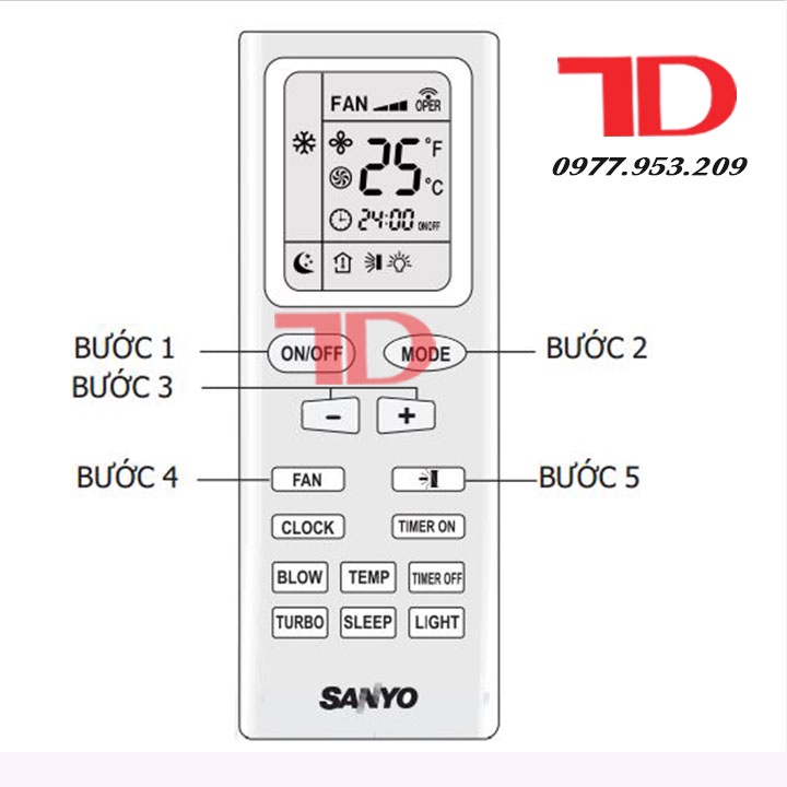 Giới thiệu Remote máy lạnh, điều khiển dành cho máy lạnh SANYO viền xanh