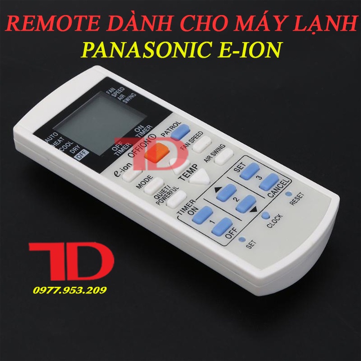 Remote dành cho máy lạnh Panasonic eion sử dụng cho các dòng máy lạnh Panasonic eion từ 1hp - 3.0hpSử dụng 2 pin tiểuAAA.