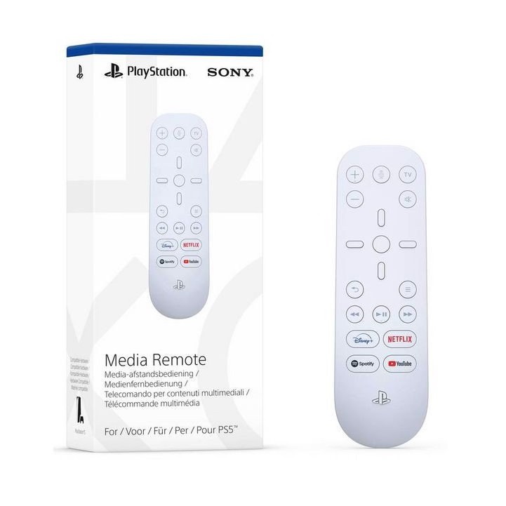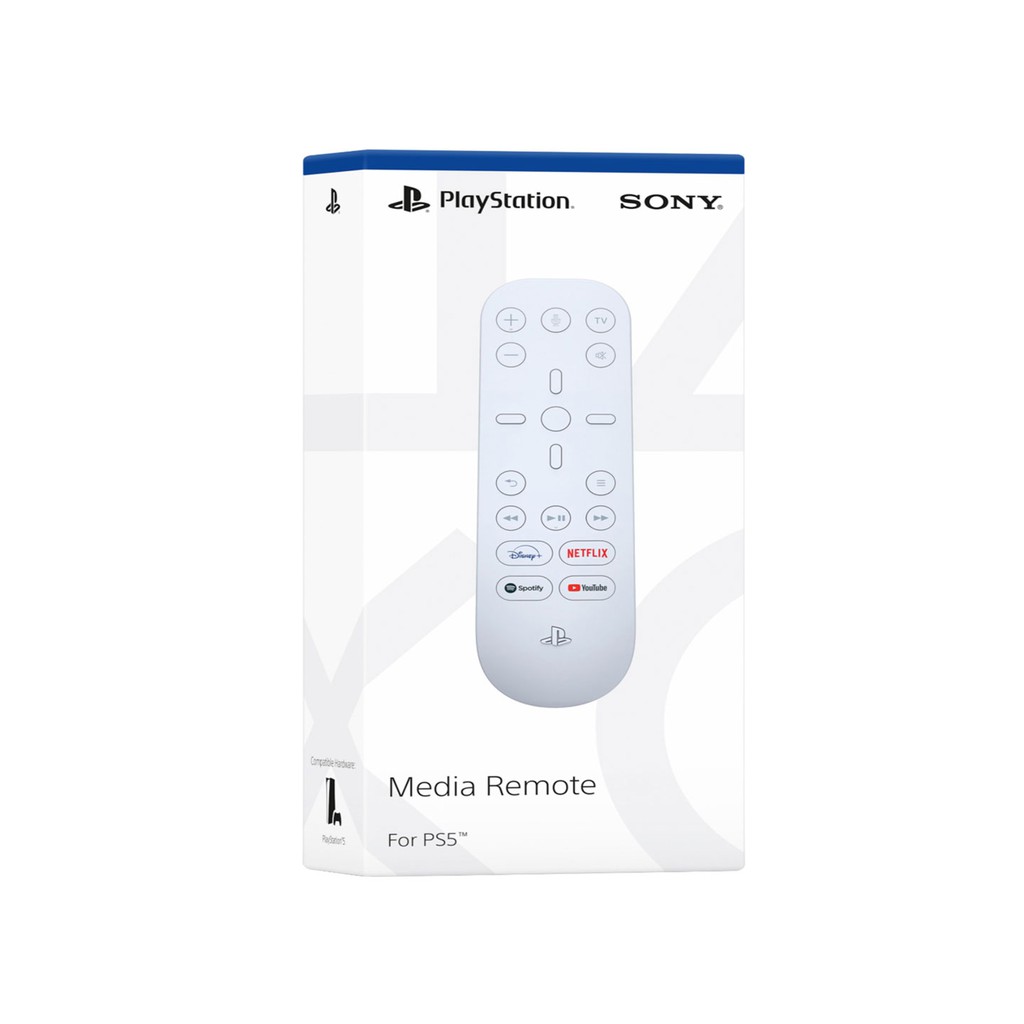 Media Remote là điều khiển từ xa hoàn toàn mới dành riêng cho PS5, sở hữu thiết kế tương đồng với PS5 với các đường nét bo cong mềm mại uyển chuyển và tone chủ đạo là màu trắng như hệ máy PS5. Trên remote cũng có khắc các họa tiết PlayStation như trên máy PS5, tay cầm và các phụ kiện khác.