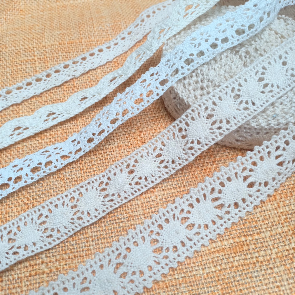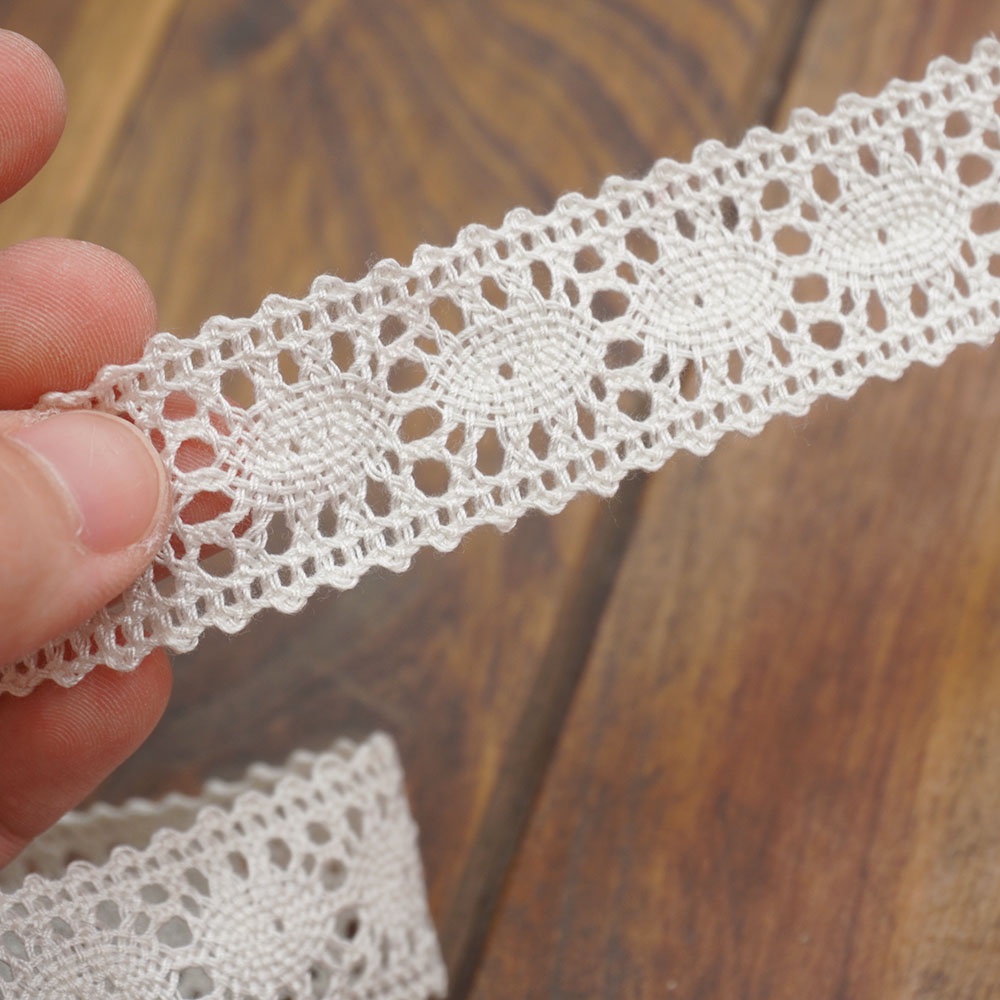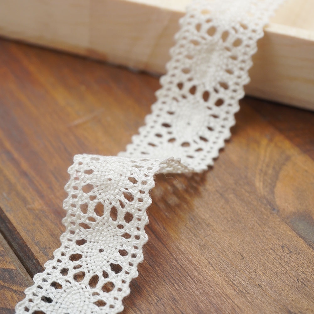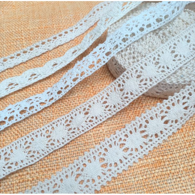 Ren màu trắng ngà ứng dụng trong may mặc, làm viền quần áo, phụ kiện... Với các kích thước và họa tiết khác nhau tùy nhu cầu sử dụng và sở thích.Ren được bán theo cuộn 5m.