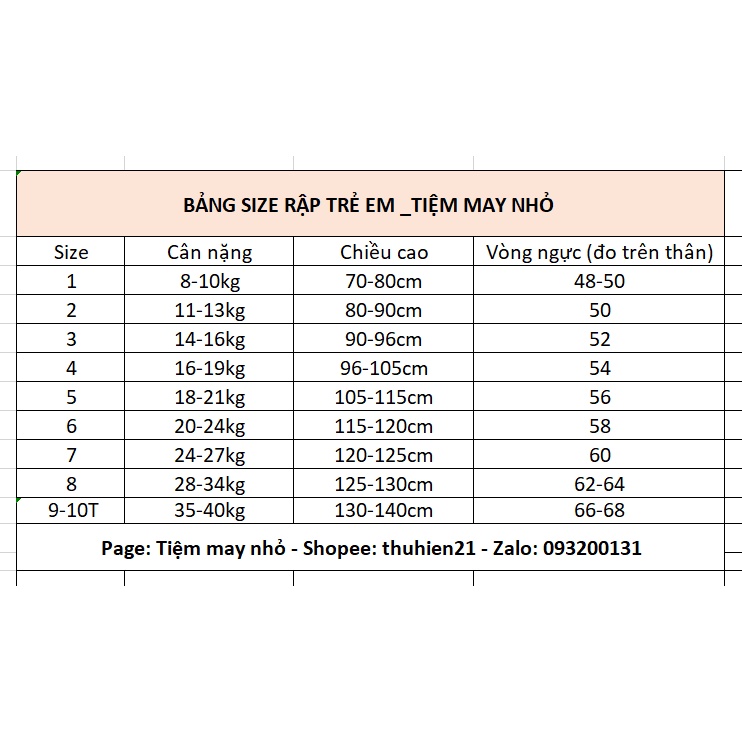 LƯU Ý : Rập giấy là bản vẽ trên trên giấy để mọi người tự may đồ chứ không phải quần áo đã may nên mọi người cân nhắc trước khi mua ạTrượt sang ngang để size bảng size và ảnh mẫu nhé. Hiện tại Tiệm có 2 kênh shopee chính thức: Thuhien21 và Tiemmaynho. com, quý khách nên mua rập giấy tại 2 kênh này để tránh trường hợp giả mạo