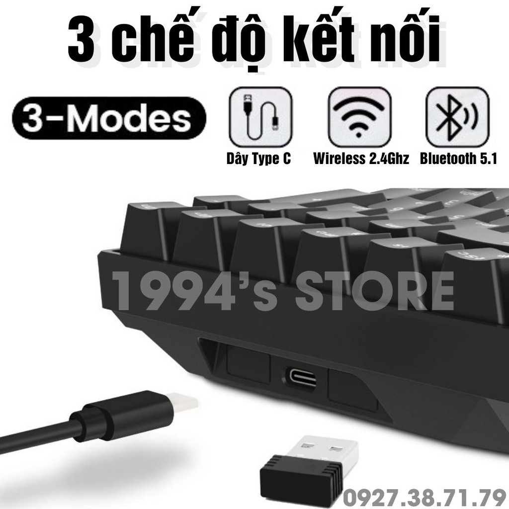 - 3 chế độ Bluetooth 5.1 (3 thiết bị) + Wireless 2.4Ghz + Type-C có dây