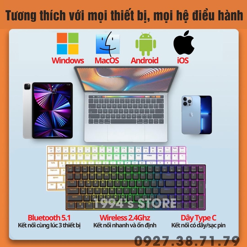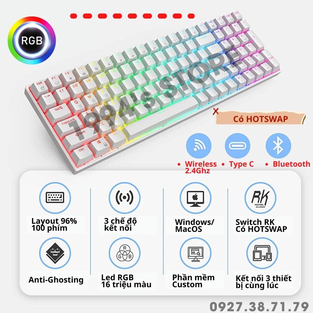 Máy tính & Laptop > Chuột & Bàn Phím > Bàn Phím Máy Tính || RK100 Version 4 HOTSWAP - Bàn phím cơ không dây RK100 RK860 RGB Bluetooth 5.1 + Wireless 2.4G + Type C + Phần mềm CustomCòn hàng