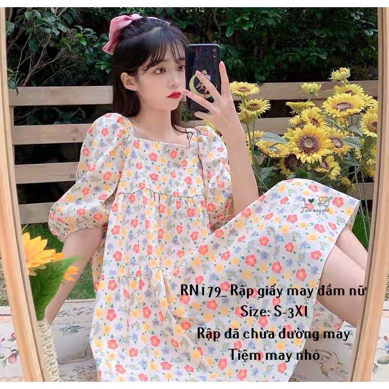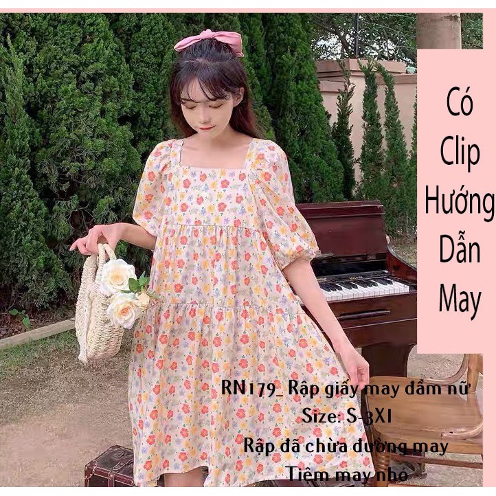 Giới thiệu RN179_rập giấy may đầm xòe cổ vuông nữ