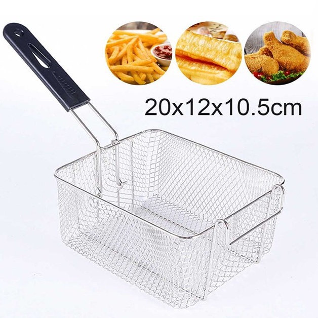 - Rổ Bếp chiên nhúng dùng để chiên ngập với nhiều món ăn Thông dụng như chả giò, nem, đùi- cánh gà, bánh phông tôm... một cách đơn giản và an toàn