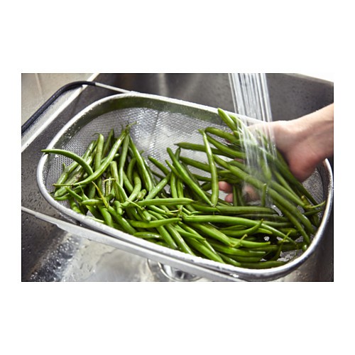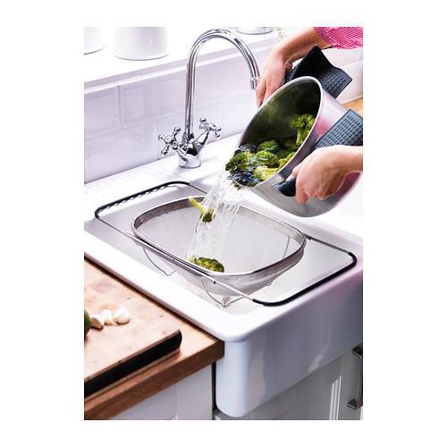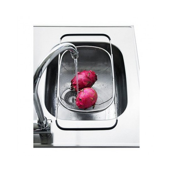 Rổ đa năng,Phù hợp với hầu hết các bồn rửa chén vì các tay cầm có thể được điều chỉnh. Tay cầm bằng plastic che phủ làm cho ống tưới nằm yên trên mép bát nước. Chân rổ có thể giúp đứng vững.