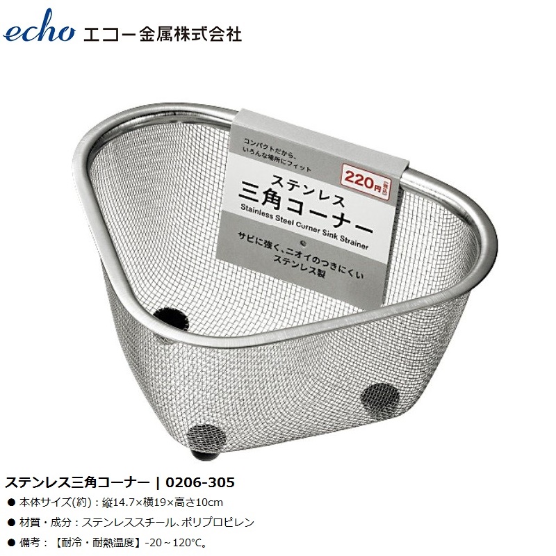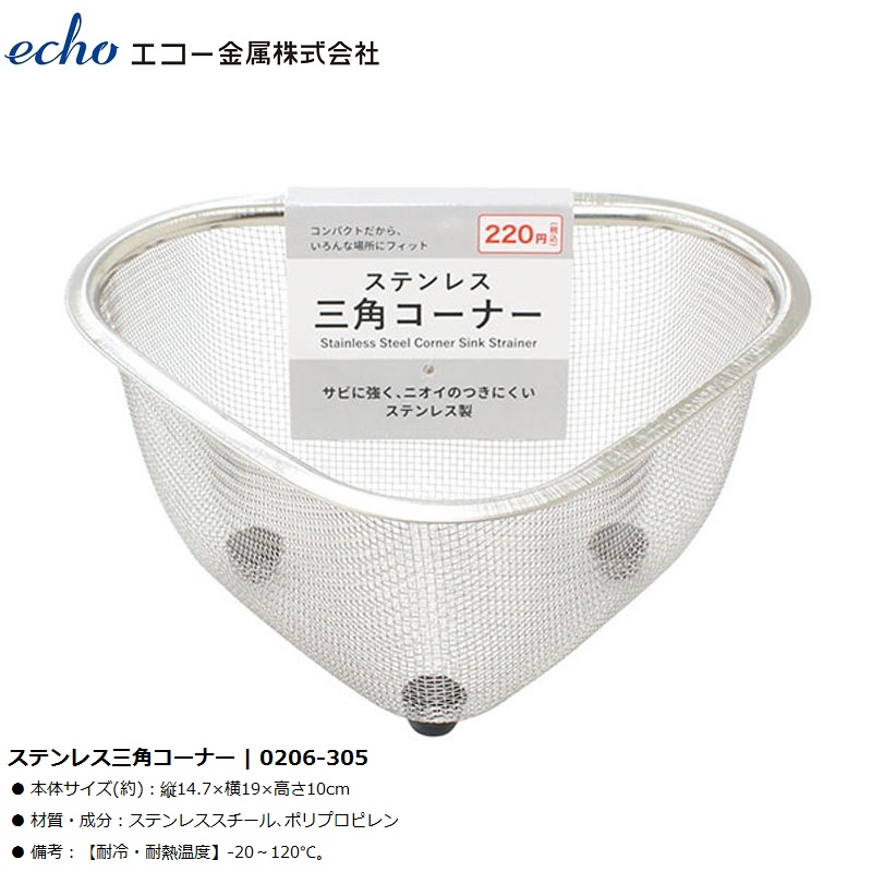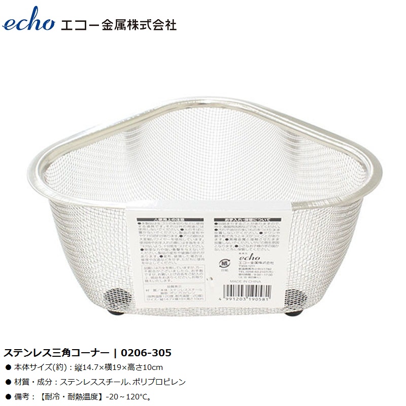 RỔ GÓC INOX HÌNH TAM GIÁC CÓ CHÂN ĐẾ ECHO METAL - HÀNG NỘI ĐỊA NHẬT BẢN